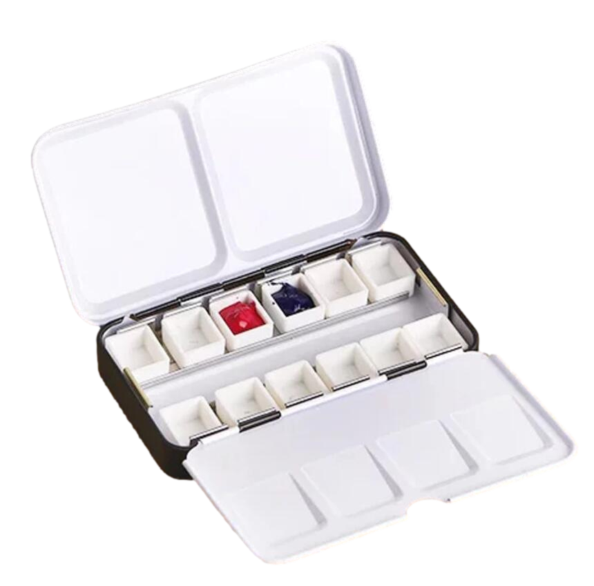 Tragbarer Aquarell-Leerkasten aus Metall mit Mischpalette und Daumenring - inkl. 12 halbe Näpfe- Regular price