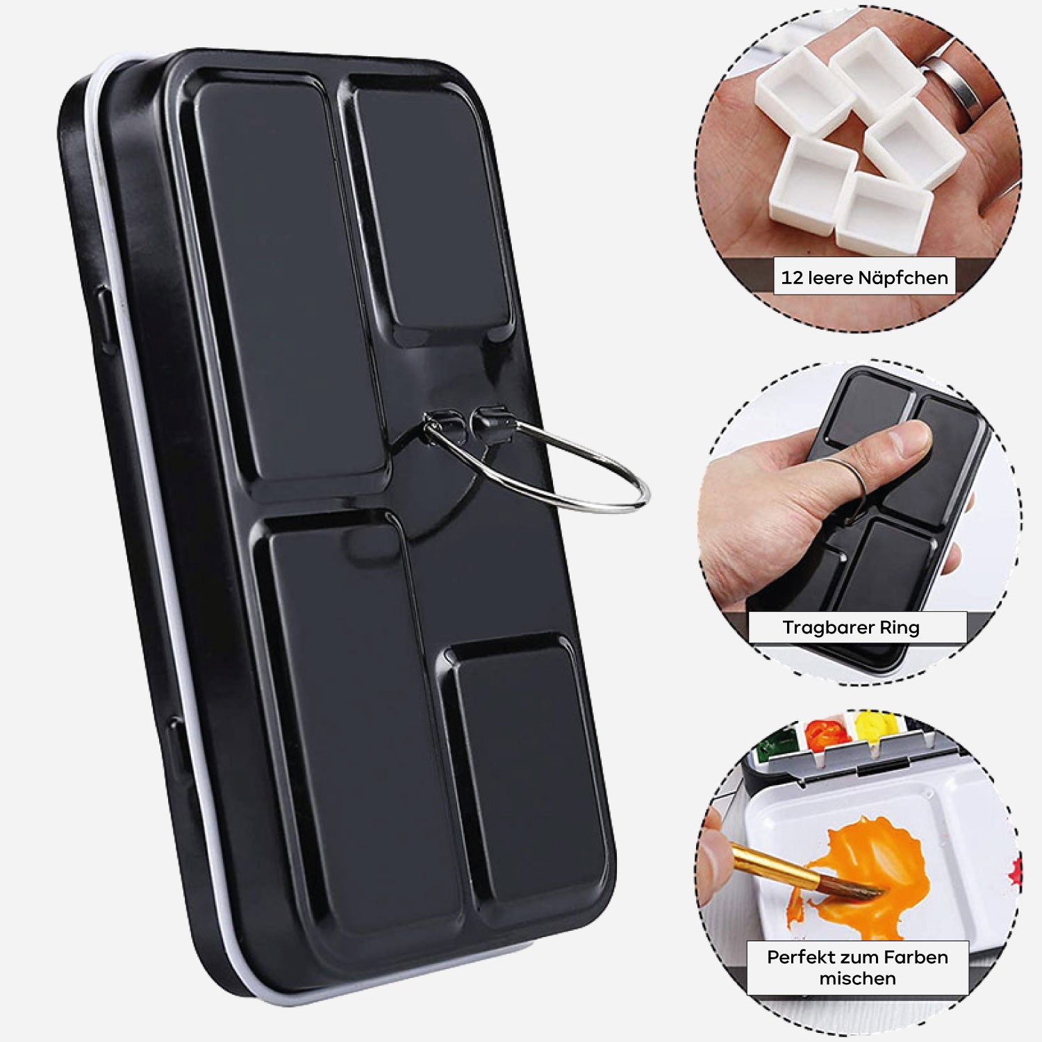 Tragbarer Aquarell-Leerkasten aus Metall mit Mischpalette und Daumenring - inkl. 12 halbe Näpfe