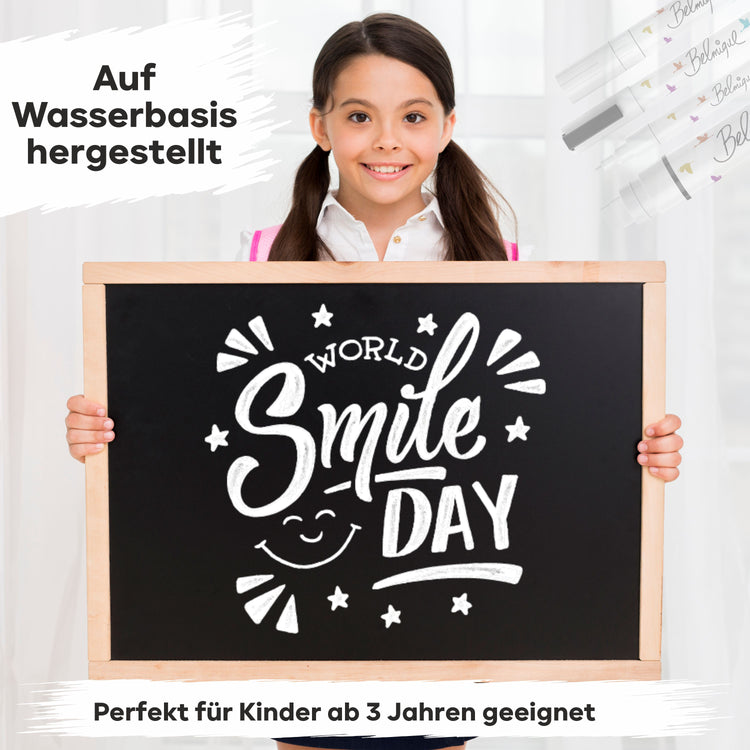 KID-FRIENDLY MARKER PENS – No hazardous ingredients and completely dust-free! Belmique Chalk Markers are not only safer than regular chalk, they also give you more beautiful colors for every event!