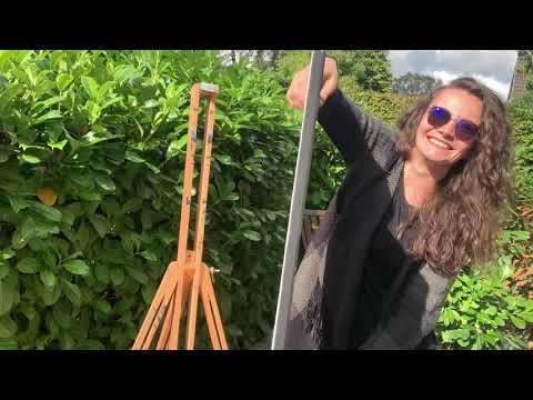 The painting is taken like a selfie, with a slight tilt towards the camera. The dancer stands out against the background, which consists of different shades of blue. Her body is curved and moves gracefully while her face is turned towards us, inviting us to admire her dance.