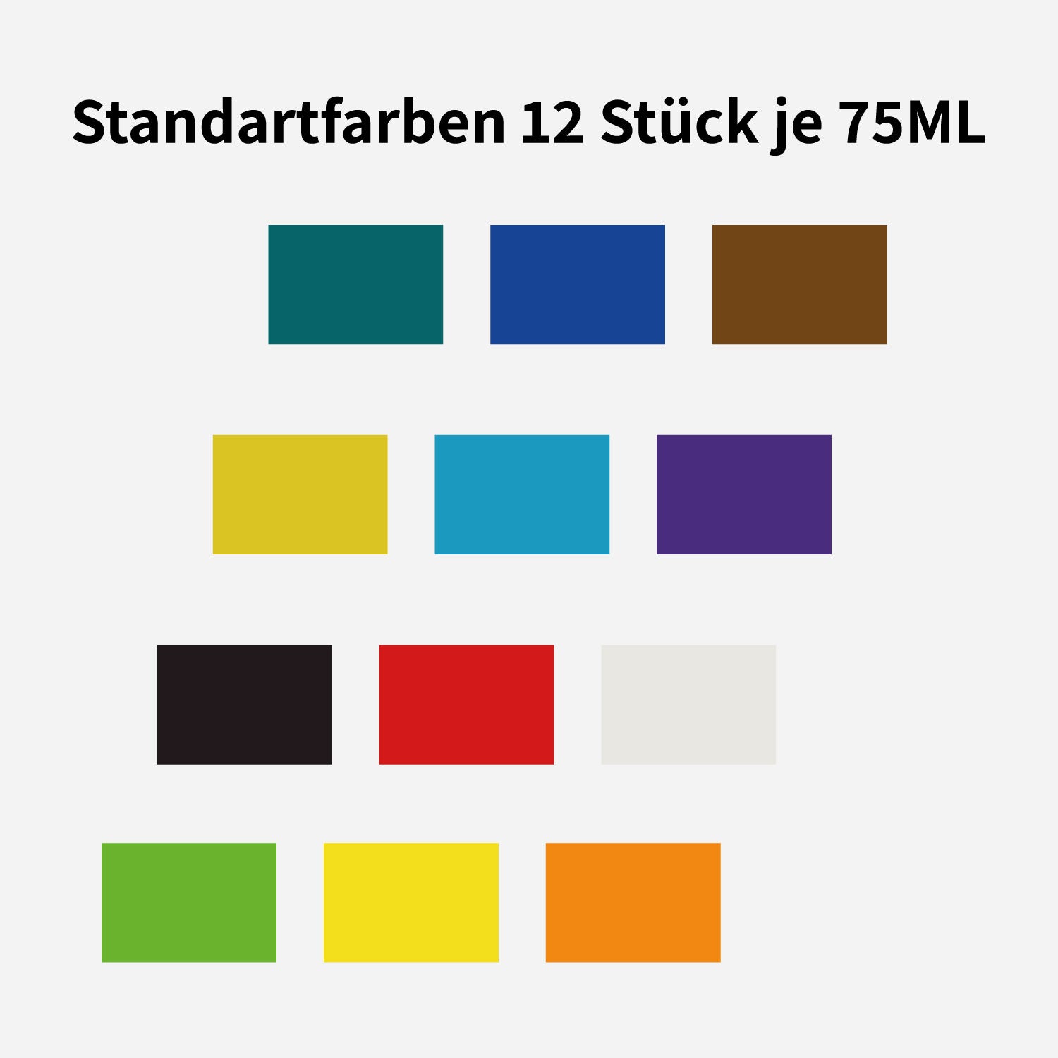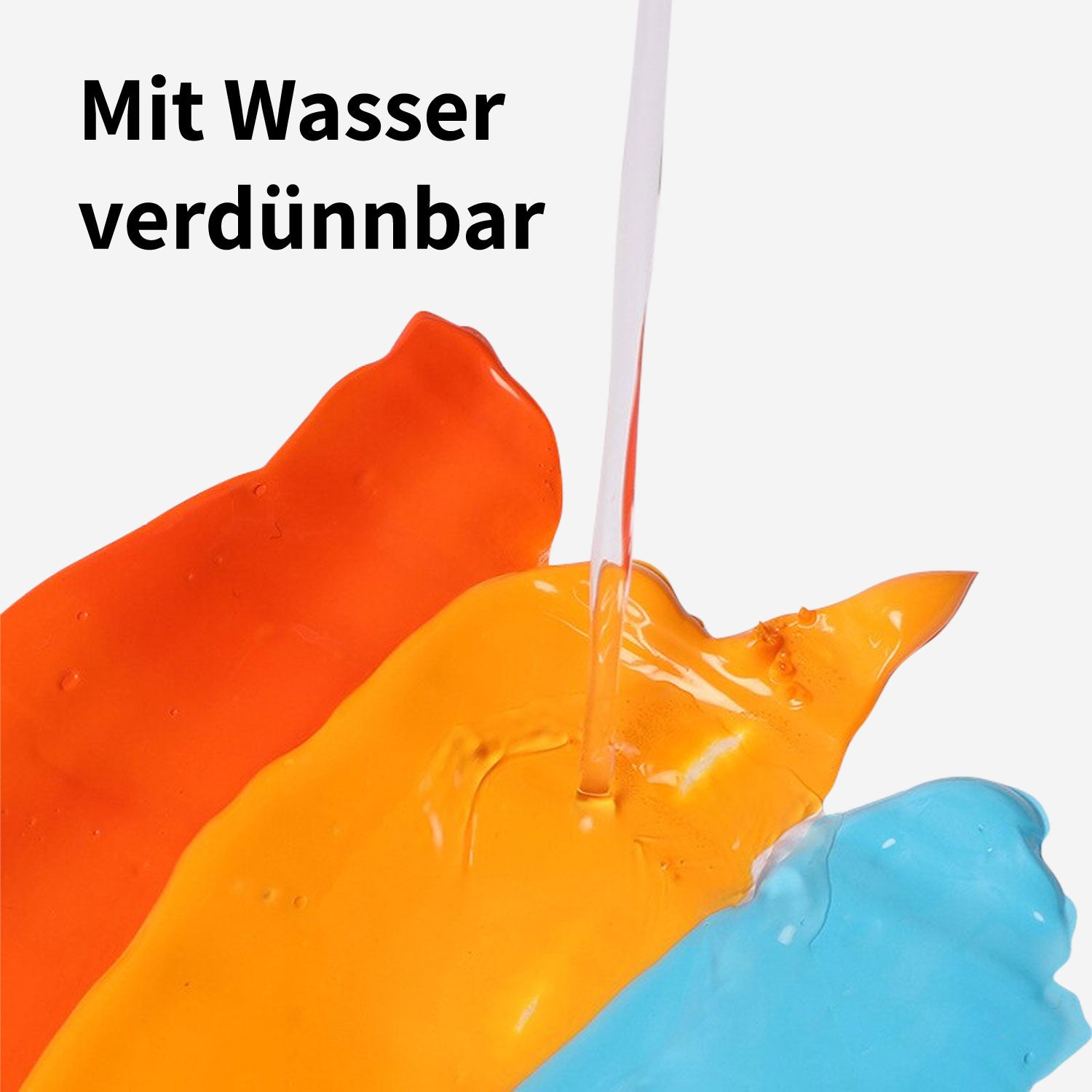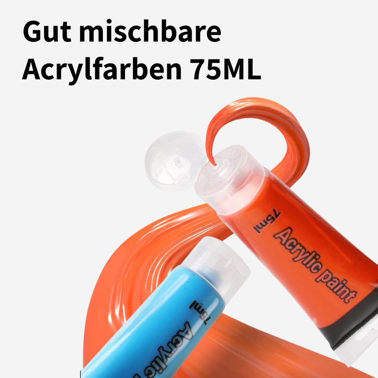 XXL acrylic paint set: This set with 12 standard colors makes it easy to create beautiful works of art! You can use our watercolor brushes to apply the paint, which are suitable for this product.