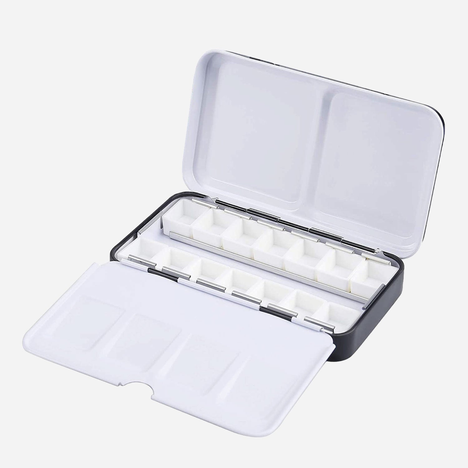 Wunderschöner Leerkasten - Hol dir jetzt das ultimative Set für Aquarellmaler! Mit unserem Set erhältst du eine leere Aquarell-Dose mit 12 halben Pfannen, die du nach deinen eigenen Wünschen füllen kannst.