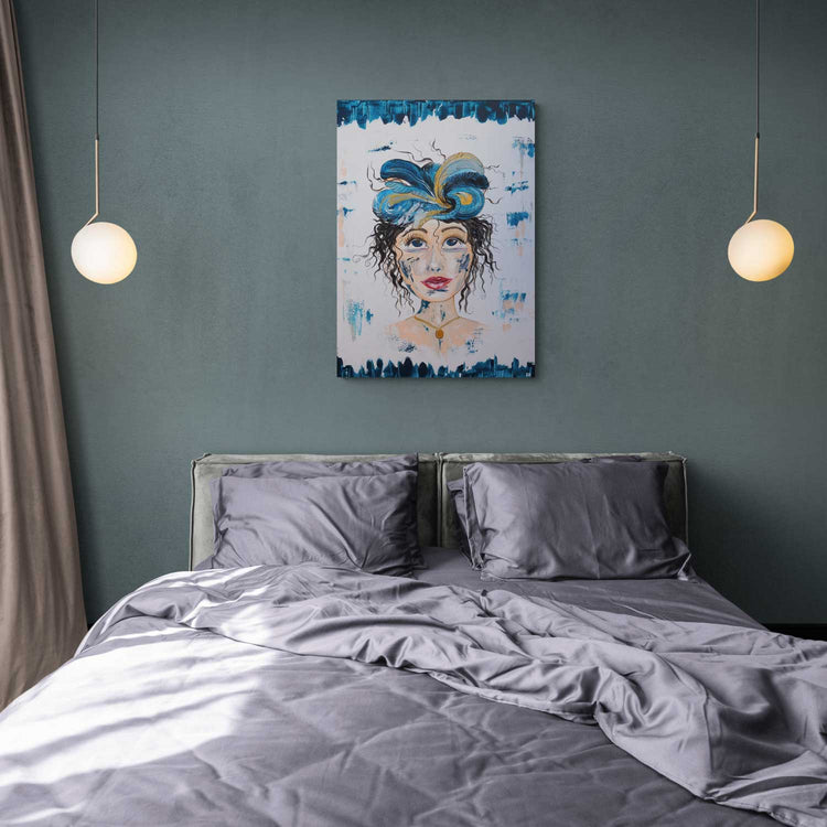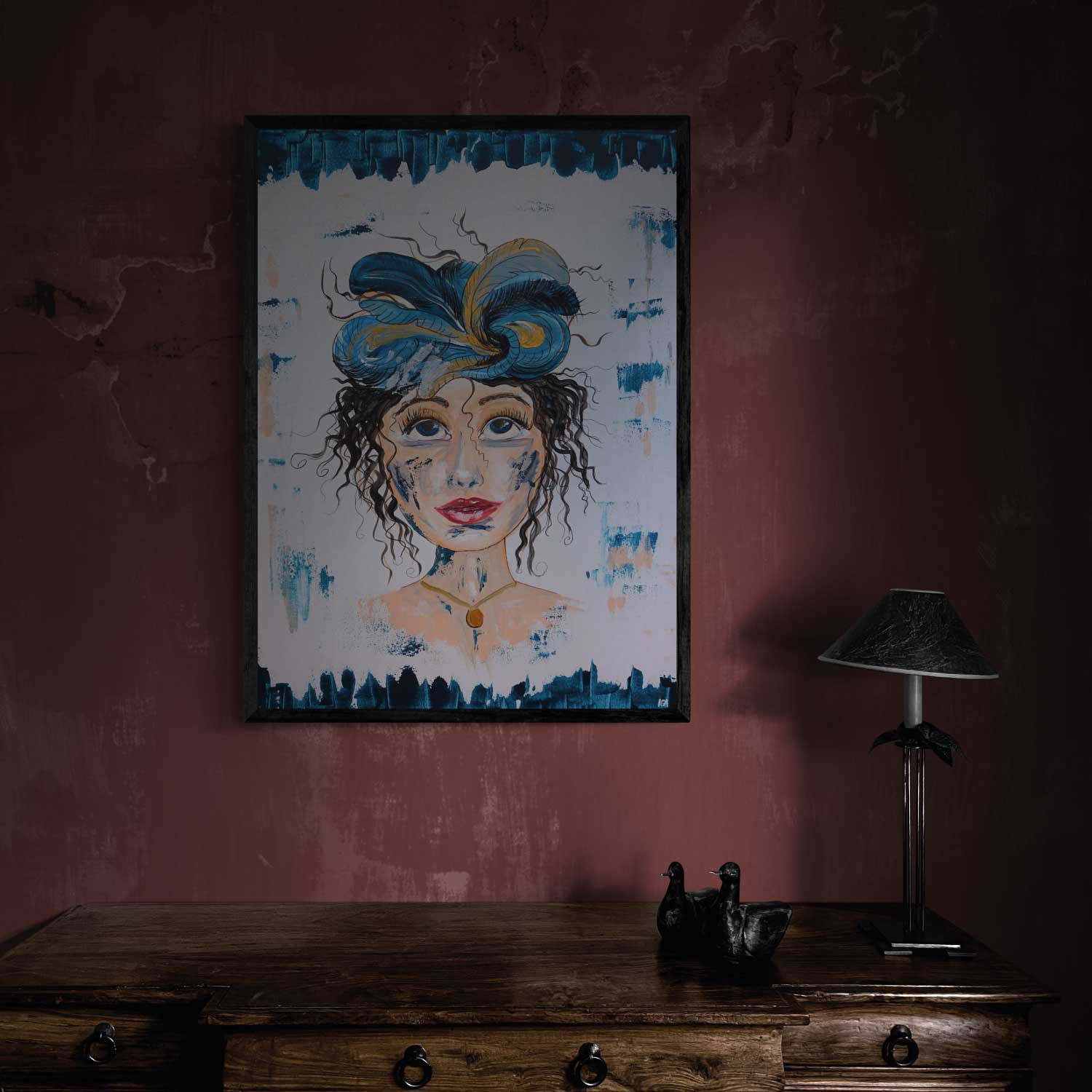 I love strong characters and this picture embodies the beauty and wisdom of women at the same time. With that wild feather on her head, she reminds me of the princess of the tribe. The color palette I chose for this image is also inspired by the colors of nature, making it perfect for any room in your home.