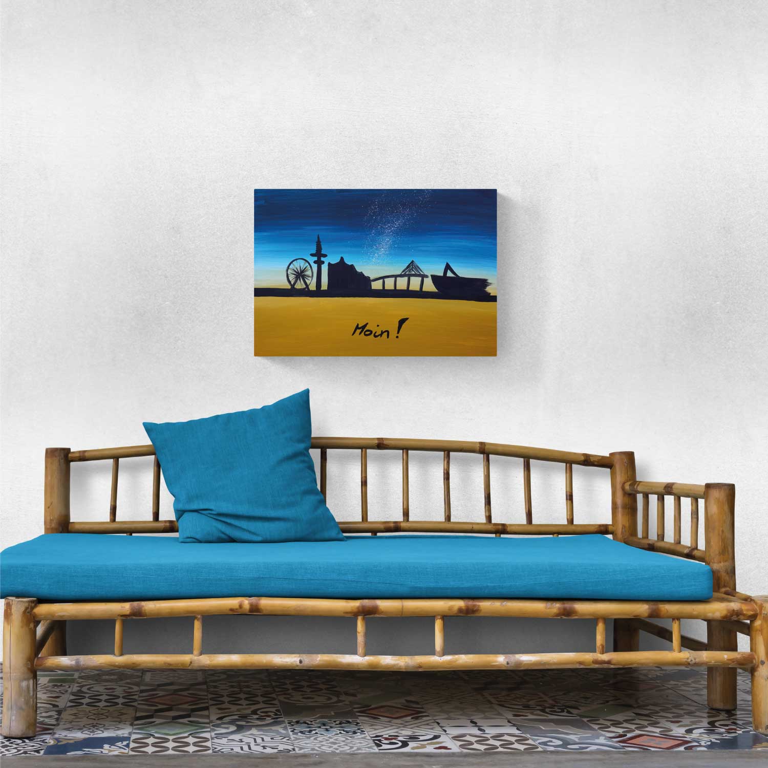 Hand-painted mural Hamburg - acrylic painting Moin 70x50x2cm