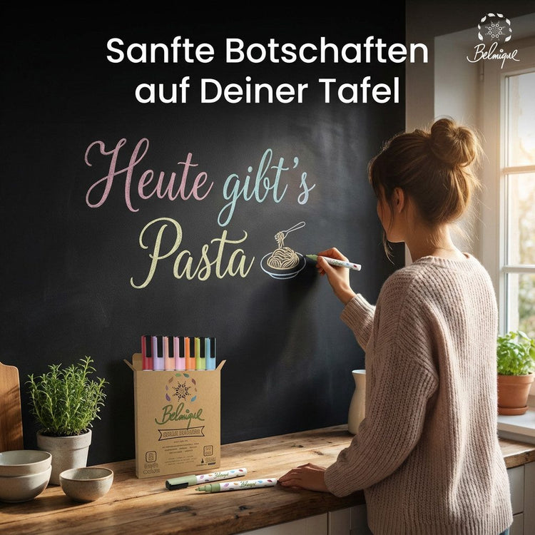 FLEXIBLE USABLE MARKERS - Bright pastel colors on a variety of smooth surfaces! Whether window, whiteboard, chalk board or glass - our markers can be used as whiteboard markers, glass markers, chalk pens & window pens and express strong colors!