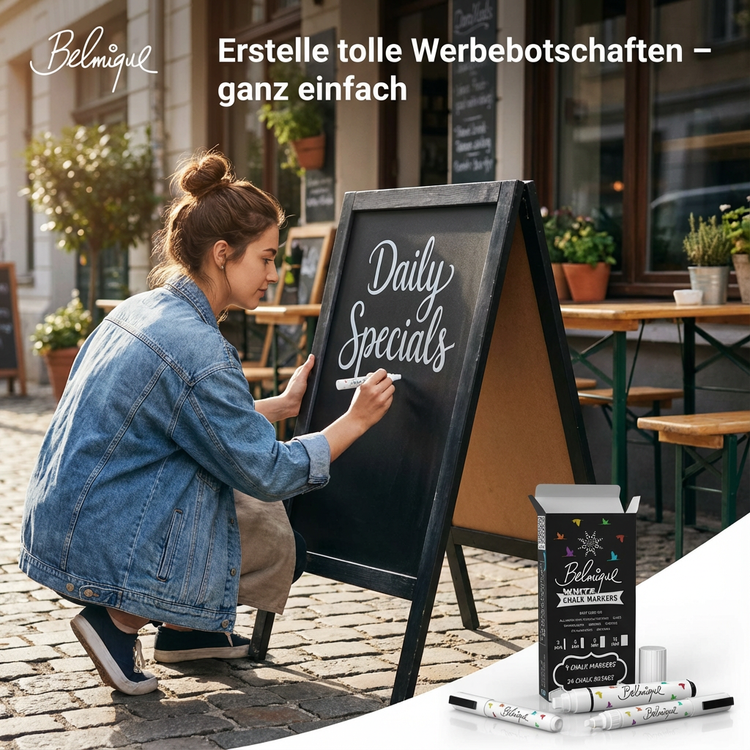 DURABLE CHALK MARKERS - In order to give you long-lasting pleasure with our product, we offer you extremely durable and resistant tips for our chalk markers, which do not fray or become brittle even after repeated use. Use your creativity to the last drop for long-lasting durability!