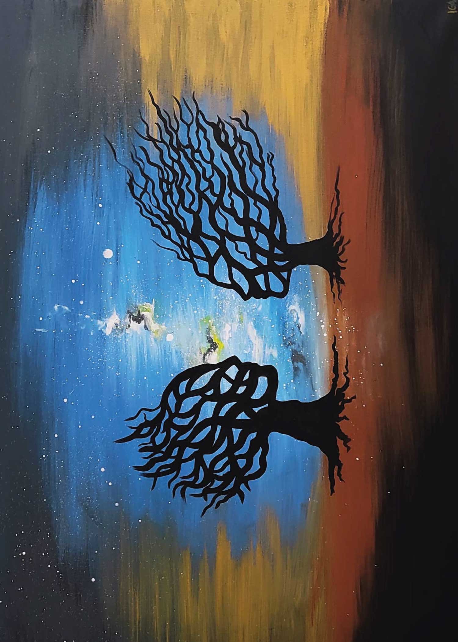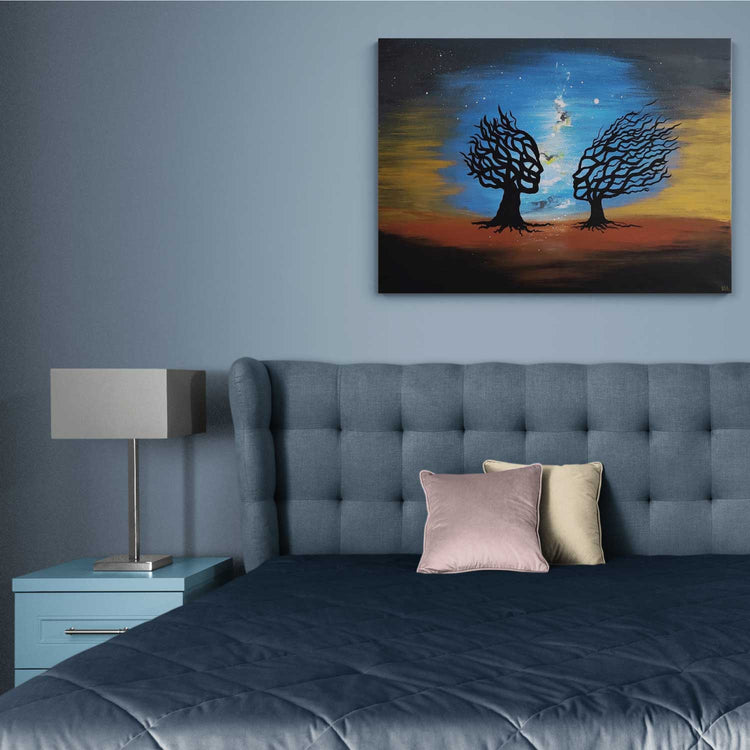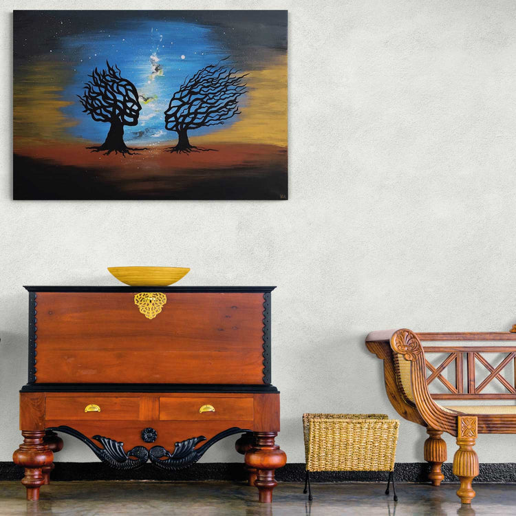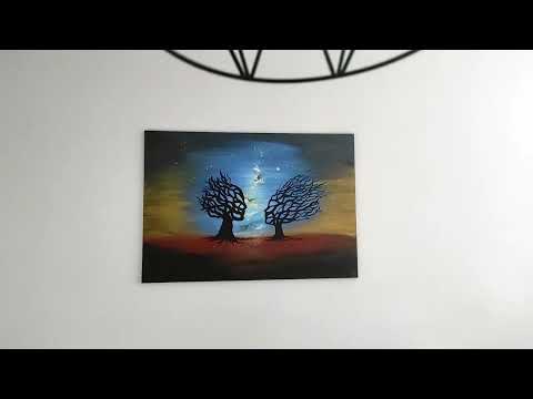 Hand-painted mural - acrylic painting Peaceful Trees 100x70x2cm