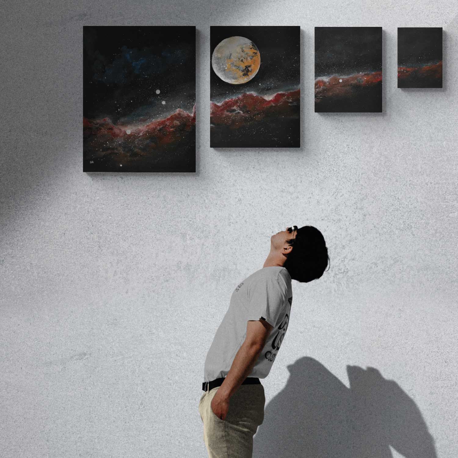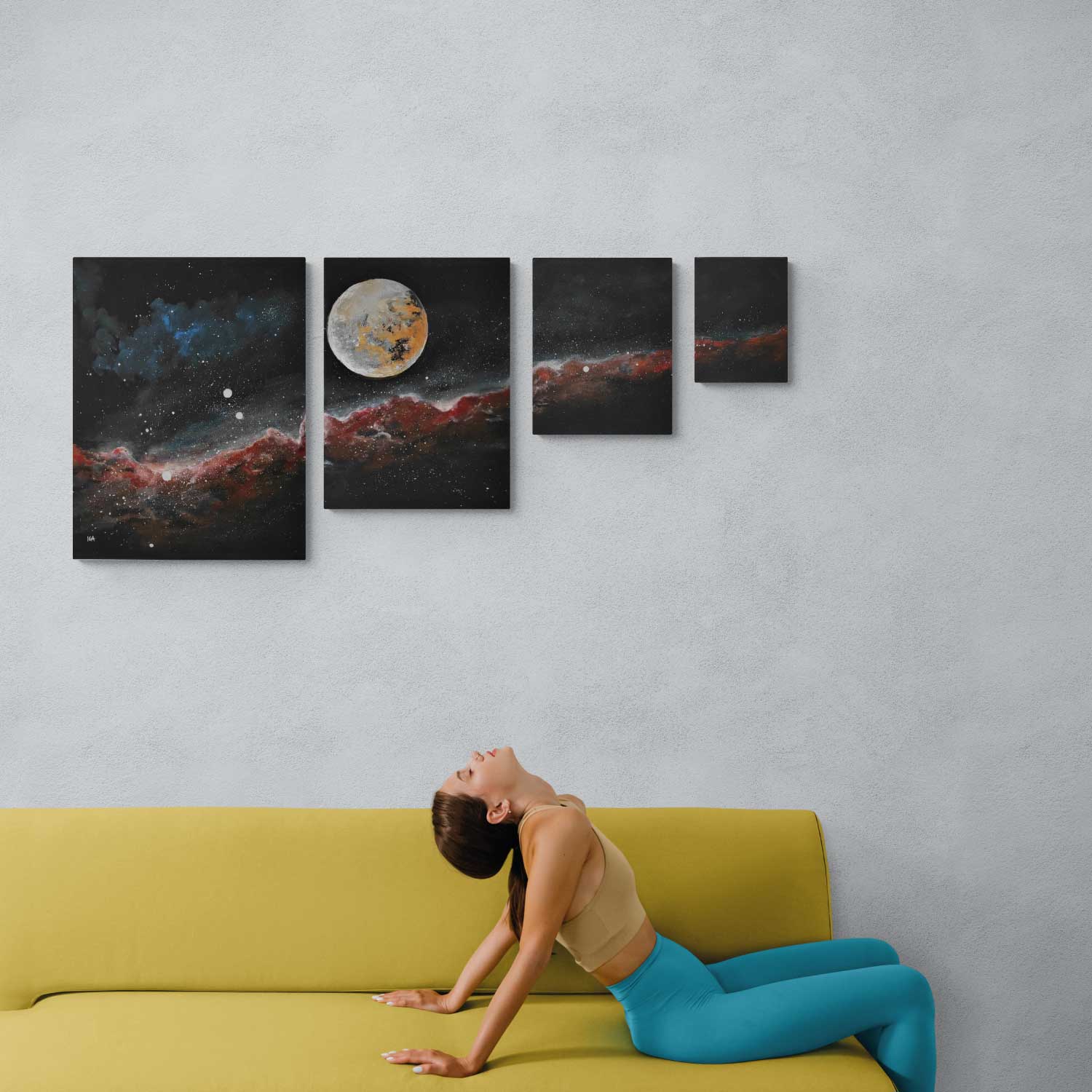 4 parts acrylic painting, hand painted with artist signature